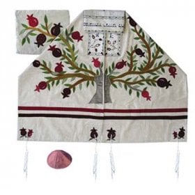Yair Emanuel Embroidered Raw Silk Tallit Set, Tree of Life Pomegranate Tree - White$285.02FREE shipping -