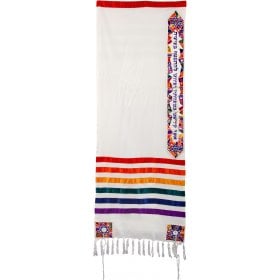 Yair Emanuel White Polysilk Tallit Set - Embroidered Colorful Jerusalem Design16" x 70"$133.82 -
