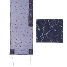 The striking feature of Emanuel’s tallitot are the exciting motifs that are repeated in the various fabrics. On a solid background color, you will find scenic views of Jerusalem and representations of the Twelve Tribes. Delicate embroidery displays designs that incorporate crowns, doves, sheaves of wheat or colorful rainbows. The ever-popular pomegranate theme is found in a variety of styles and colors. He also has modern renditions of Biblical characters such as the Matriarchs, Miriam and the tambourine or Miriam and the Prophetess Deborah.