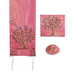 Yair Emanuel PolySilk Tallit Set Embroidered Tree of Life - PinkSize: 16" x 70"$136.04