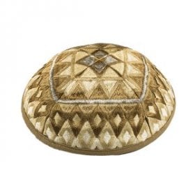 Yair Emanuel, Cotton Poly Kippah with Silk Embroidered Geometrical Shapes Gold$12.84 -