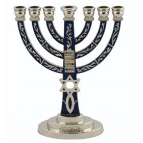 7-Branch Menorah, Dark Blue on Silver with Breastplate and Star of David 5.2"Height: 5.2"$19.21 -