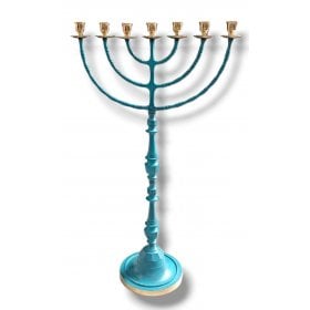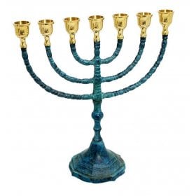 Seven Branch Blue Turquoise Patina Menorah, Gold Candleholders 12" HeightHeight: 12"$77.08 -