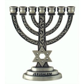 Seven Branch Menorah with Jerusalem Images, Pewter - Option 5.3" or 8.6" HeightAvailable in two Sizes$15.13 - $57.33 -