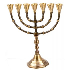 Seven Branch Menorah, Dark Gold Brass with Antique Look Option 10" or 12"Comes in 2 sizes$57.74 - $95.26 -