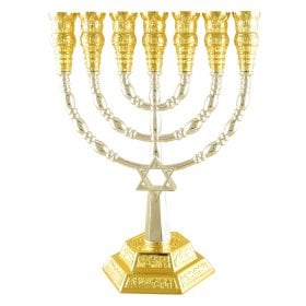 Two Tone Silver and Gold 7 Branch Menorah, Star of David and Jerusalem ImagesHeight: 9.4"$61.79 -