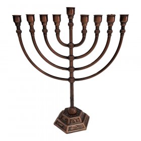 The traditional eight-branch Menorah, called Hanukia in Hebrew, displays eight candle holders and a separate one for the Shamash light. Oil and wicks are preferable but candles are equally suitable to create those glowing beloved lights. The text will specify if it is a candle-only Menorah. Our precise measurements will help you choose the right size depending on whether the Menorah will stand by a window, door or on the table.