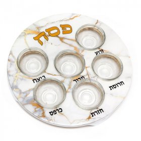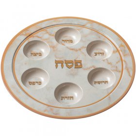 During the Sedder Meal on Passover, the Seder Plate is central to the recounting of the Haggadah, with symbolic foods used during the Seder, geared to arouse the children's curiosity and enable recounting the miracles of the Jews' Exodus from Egypt. The Keara is traditionally round, but the more contemporary ones come in various shapes. There are always six symbolic items on the plate. The Zeroah, is a roasted bone, can be a chicken wing or leg, representing the Passover offering that was brought in the Holy Temple in Jerusalem. The beitzah, a hard boiled egg, sometimes given an additional couple of minutes on an open flame (make it a small one though), which also is commemorative of the festival offering brought in the Beis Hamikdash. The Maror, or horseradish root are biter herbs symbolizing the bitter suffering the Jews had to endure in Egype. Charoset, or a paste like mixture of chopped nuts, wine and apples is reminiscent of the mortar that was prepared for the brick building in slavery in Mitzrayim. The karpas, which can be a radish, onion, boiled potato or sprig of parsley, is dipped into salt water at the beginning of the Seder, to remind us of the salty tears the Jewish slaves shed. Finally, the Chazeret, or Romaine lettuce is also a bitter herb, eaten in a Matzah sandwich together with Maror.