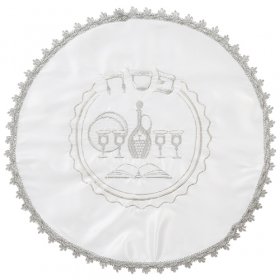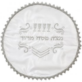 Passover Seder Matzah Cover, Silver Embroidered Pesach Seder Symbols - Satin$12.06 -
