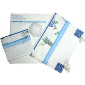 Ronit Gur Tallit Set, Off White with Blue and Green Floral Design - Viscose$242.73