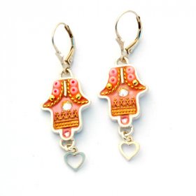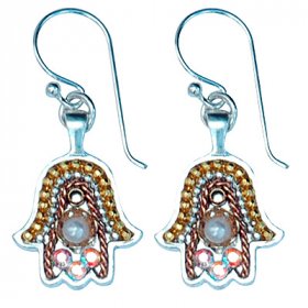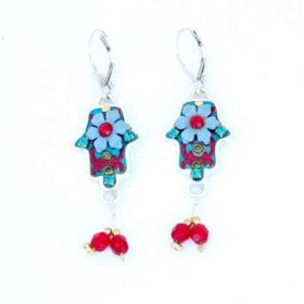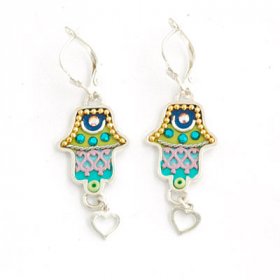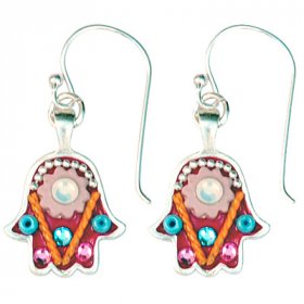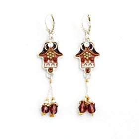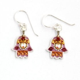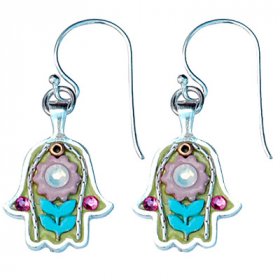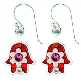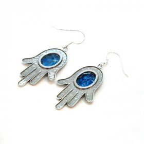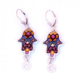 Michal Kirat Hamsa Good Luck Silver Drop Earrings with Roman Glass Center$99.53 -