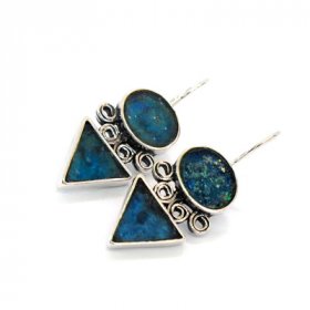 Michal Kirat Handmade Drop Earrings, Double Roman Glass - Circle and Triangle$134.93 -
