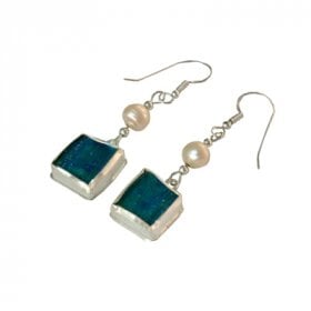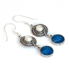 Michal Kirat Sterling Silver Dangle Roman Glass Earrings with Pearl on Circular Disc$160.36 -