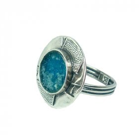 Michal Kirat, Sterling Silver Ring with Framed Round Roman Glass - Adjustable$50.87 -