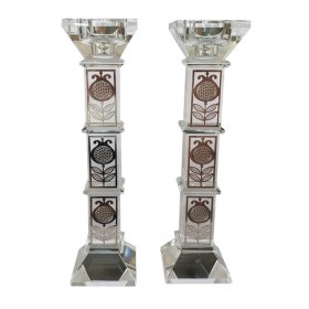Tall Crystal Glass Candlesticks with Pomegranate Decoration - 9 InchesHeight:9"$107.63 -