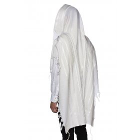 Yishtabach Praise Wool Tallit Non Slip Prayer Shawl - Shiny White Stripes$134.95 - $195.00New! -