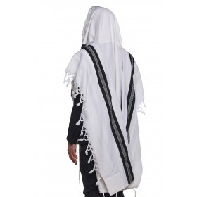 LaMenatzeach Victory Wool Tallit Non Slip Prayer Shawl - White and Silver Stripes$94.95 - $195.00New! -