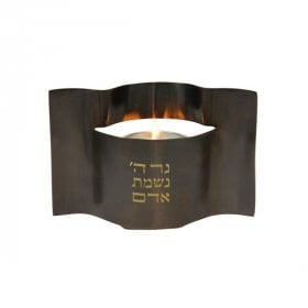 Yair Emanuel Flame Shaped Yahrzeit Memorial Candle Holder – Cutout Yizkor Hebrew$28.37 -
