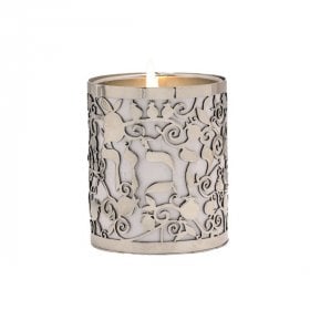 Yair Emanuel Yahrzeit Memorial Candle Holder, Hammered with Hebrew Words - Silver$32.07 -
