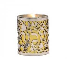 Yair Emanuel Yahrzeit Memorial Candle Holder, Yizkor & Pomegranates Cutout – Gold$29.86 -