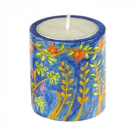 Yair Emanuel Yahrzeit Memorial Candle Holder, Yizkor & Pomegranates Cutout – Blue$29.86 -