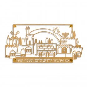 Dorit Judaica Large Cut-Out Jerusalem Wall Plaque with Hebrew Psalm Words – Gold$164.79 -