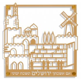 Dorit Judaica Wall Plaque, Cut Out Jerusalem Images with Hebrew Words – Gold$142.67 -