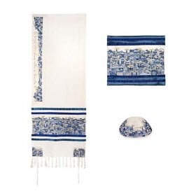 Yair Emanuel Embroidered Cotton Tallit Set - Jerusalem in BlueChoice of 2 sizes$215.45 - $411.31FREE shipping -