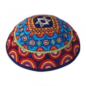 Yair Emanuel Embroidered Kippah, Stars of David - Blue and Red$12.84 -