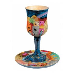 Yair Emanuel Hand Painted Wood Stem Kiddush Cup and Plate - Jerusalem5.5” X 5”$34.29 -