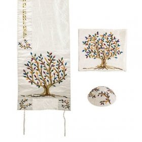 Yair Emanuel PolySilk Tallit Set Embroidered Tree of Life - ColorfulSize: 16" x 70"$136.04 -