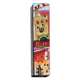 Yair Emanuel Small Hand Painted Wood Mezuzah Case - Jerusalem on Red$11.69 -