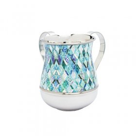 - Yair Emanuel Metal Netilat Yadayim Wash Cup, Blue Enamel Geometric Design$36.00New!