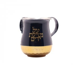 - Yair Emanuel Metal Netilat Yadayim Wash Cup, Blue and Gold with Blessing Words$33.00New!