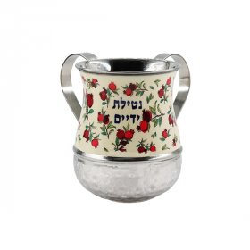 - Yair Emanuel Metal Netilat Yadayim Wash Cup, White Enamel Pomegranate Design$36.00New!