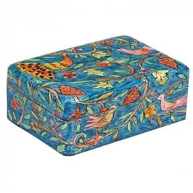 Looking for a bat mitzvah gift? Yair Emanuel offers you a choice of jewelry boxes decorated with his hallmark colorful designs.