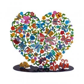 Yair Emanuel Large Hand Painted Heart on Stand - Colored Butterflies and Flowers$36.49