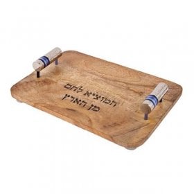 Yair Emanuel Grained Wood Challah Board, Blessings Words - Blue Handles$116.13 -