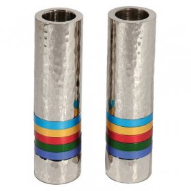 Yair Emanuel Anodized Aluminum Slender Shabbat Candlesticks - Colored BandsChoice of Colors$78.80 -