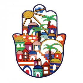 Yair Emanuel Small Colorful Wall Hamsa with Jerusalem Design$19.95New! -