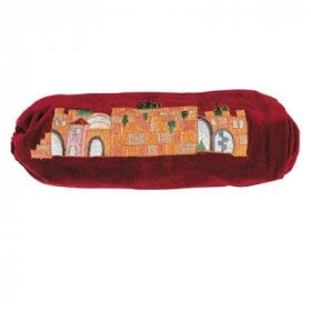 Artist Yair Emanuel has decorated his pouches with colorful images of Jerusalem. Others feature a Shofar design on blue or navy velvet. An added feature - the pouch displaying a Biblical has a pocket to insert a Prayer Book. Other pouches have a strap so you can even sling it on your shoulder!