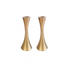 One of the items most associated with Shabbat and Holidays are candlesticks. This is the time when the Jewish woman pours her heart out in prayer, an auspicious time for her pleas, since this is one of the three Mitzvot, or commandments that the Jewish woman received and is much beloved by G-d. After the lighting ceremony, a moving prayer is recited by the mother, for the coming week, for G-d fearing children and other prayers only a mother can present. The sight of the Shabbat table graced with two gently burning candles touches our hearts and spirits, ushering in the holy day, when we spend time with our families and friends around the Shabbat table, with the glowing candles and just talk, reciting experiences from this past week, offering Torah insights, laughing and recharging our spiritual batteries. We offer the most traditional items, in materials such as pewter, nickel, ceramic, aluminium and more plus a great choice of contemporary items from favorite Israeli artists. Take, for example the Flower themed ones by Shraga Landesman, in his tribute to nature, reminiscent of the seven days of creation when all the world and it's inhabitants were created. The contemporary Agayof design utilizes vivid shades and sleek lines for an avant-garde appearance. The handcrafted pewter candlesticks by Ester Shahaf are a tribute to painstaking handwork and detailed emanel work. They are also available in folding travelling versions, all seamlessly crafted and eminently practical. Dorit Klein with her usual elegant and symmetrical design aluminium ones, which are a favorite. The classic Yair Emanuel items can be fitted into each other for a smooth rectangular shape, hand painted with Jewish themes. The filigree designs by Yealat Chen are unusual and of extremely beautiful metalwork, as is the unusual enamel on her pewter and enamel ones. Give a meaningful wedding or hostess gift with these classic Judaica items.