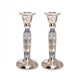 - Adi Sidler Shabbat Shalom Candlesticks, Table Design - Blue$55.24