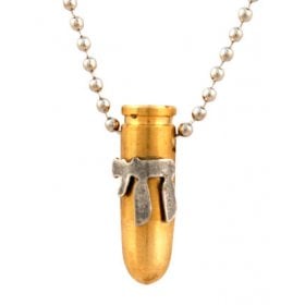 Necklace, Israeli Army Silver Bullet Pendant with Chai Letters - Ball Chain$15.03 -