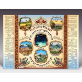 Teachers will be thrilled with the posters depicting the Twelve Tribes, Hebrew Months, Parshat Hashavua and alef-bet. Enhance the walls of your Sukkah with magnificent Ushpizin, Kotel, Seven Species poster and others. Others eloquently depict prayers or verses from Psalms. Express your love of Jerusalem with glorious posters depicting the Temple, Birkat Kohanim and others. Birkat Hamazon and the nightly Shema prayer are simplified with our attractive wall posters.