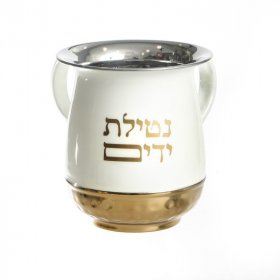 Natla Wash Cup, White and Gold Enamel with Netilat Yadayim – Stainless Steel$27.95 -