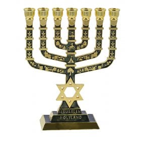 7 Branch Menorah Jerusalem & Judaic Images & Star of David, Dark Green - 9.5"Height: 9.5"$57.74 -
