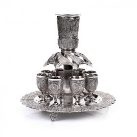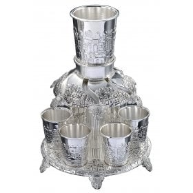 The aJudaica collection of wine fountains begins with nickel and pewter models and advances to exquisite silver plated models. They are all beautifully embellished with images of Jerusalem, luscious grape designs or graphic diamond patterns.