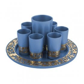 -    Yair Emanuel Blue Kiddush Cup Small Cups and Tray - Gold Cutout Pomegranates$196.19 Yair Emanuel Blue Kiddush Cup Small Cups and Tray - Gold Cutout Pomegranates$196.19