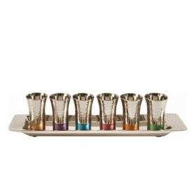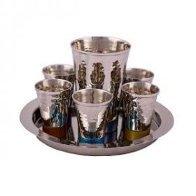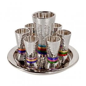 -    Yair Emanuel Hammered Nickel Kiddush Goblet, Six Cups and Tray - Multicolor Band$136.04 Yair Emanuel Hammered Nickel Kiddush Goblet, Six Cups and Tray - Multicolor Band$136.04